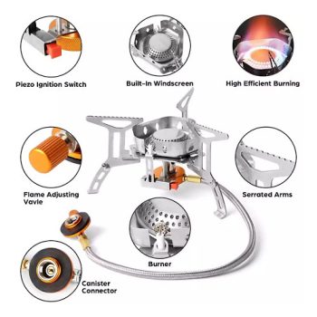 قوة إشعال جيدة: يحتوي على شعلات قوية يمكن التحكم في درجة حرارتها، مما يسمح بالطهي بشكل فعال في ظروف التخييم