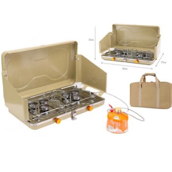 موقد رحلات مع صاج للشوي خيار مثالي لعشاق التخييم والرحلات الذين يريدون جمع بين الطهي والشوي في جهاز واحد. يتميز هذا الموقد بوجود صاج مدمجة، مما يتيح لك تحضير الأطعمة المشوية مثل اللحوم والخضروات أثناء التخييم أو الرحلات في الهواء الطلق.